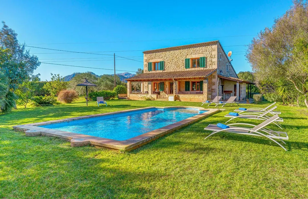 De 2-slaapkamer Can Vaja Pollença villa ligt op 6 km van de Porta de Xara en heeft een buitenzwembad, een bubbelbad om in te ontspannen.